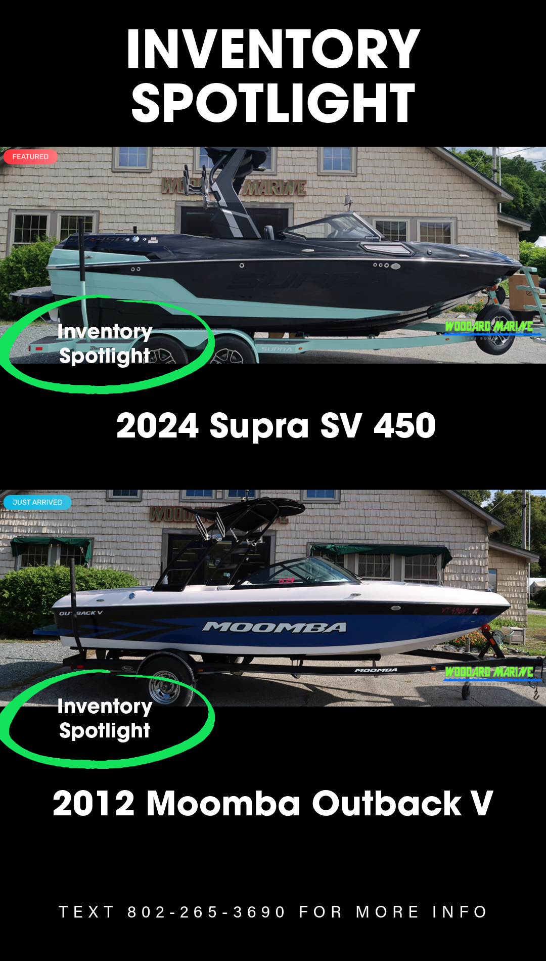 Text or call Woodard Marine at 802.265.3690 with any questions and get ready to love the lake life!